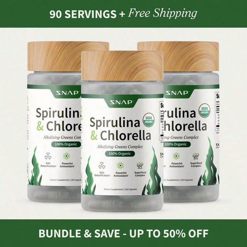 - Spirulina + Chlorella - 30 Servings - Natural Supplement Capsules Healthcare Edible